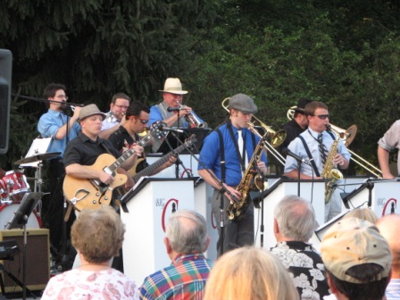 Sponsored bands play once monthly during the summer in Hershey’s Mill Golf Club parking area. |