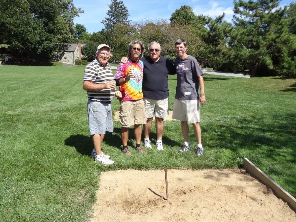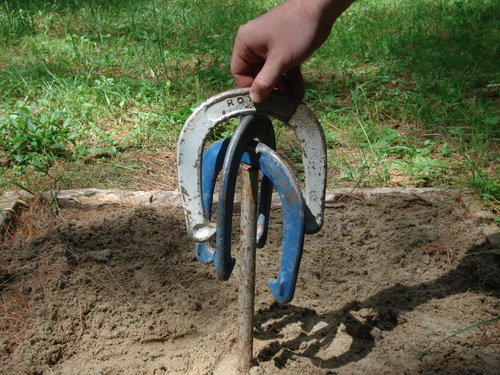 Whether it be horseshoes or quoits, everyone has tossed one at some time in their life. A horseshoe is exactly what it says and a quoit is a closed circle. The Horseshoes stake is approximately 12 inches high. The quoit stake is only high enough to fit four quoits on top of each other (3 “+/-).