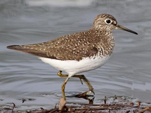 The Spotted Sandpiper is a regular spring and fall visitor. The spots are part of their spring breeding plumage. Although they lose those spots in fall, they can be easily identified by their scurrying over the rocks and mud, their tails often bobbing up and down, imitating wave action, hoping to capture an unsuspecting insect.