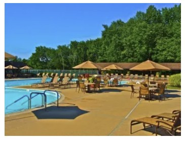 During the summer a pool with life guards, temperature control, locker room, diving board, lap lanes, free-action section, shallow wading, simple entry, Mermaid Cove for residents snacking. Aquacise is available six days a week. Often pool parties are held, some include music, food or water volleyball. Guests are permitted for a small fee.