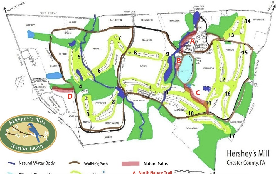 Nature sets the stage for walking, nature and various trails throughout Hershey’s Mill.